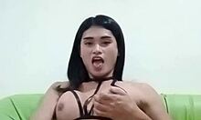 Watch this teenage ladyboy stroke her shaft on webcam