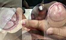 jerking my small foreskin cock to cum while ex teen squirts on juicy pussy big tits part 7