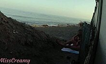 stepdaughter grips my flashing cock on public beach jerking cumshot amid crowd