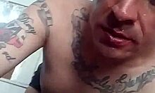 I feel so aroused watching this tattooed tranny masturbate in her stockings for the first time