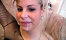 Blonde girlfriend throats my huge cock all the way down