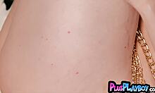 bendy brunette poses solo on webcam with close-up toy play