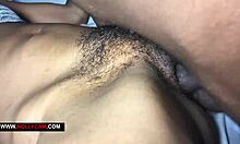 Greedy hairy pussy devours everything during ebony massage session 😈