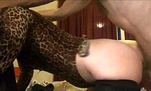 white slut bent over in spandex pants thong heels for rimjob blowjob pounding