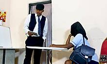 biology teacher bends ebony student over desk for deep doggystyle lesson