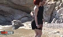 J'ai maté cette rousse nudiste écarter les cuisses pour une baise publique profonde à la plage