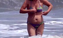 Tiny panties girlfriend struts on the beach