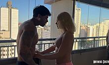 Esposa loirinha safada teases in camisolinha waiting on new apartment balcony!