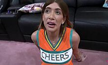 Bubbly stepsis enjoys cheerleading and gets intimate in her uniform outdoors