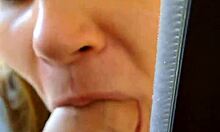 Attractive Chick in Jeans Sucks Off Bloke in White Shirt