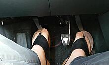 Nylon Feet and Toe Separators Tease in Car