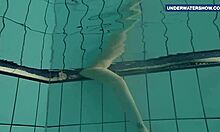 Horny Russian Brunette Teen Flashes Bright Tits Underwater at Beach Pool Making Viewers Ache