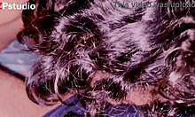 Close-up view of housewife performing sloppy oral on foreskin.