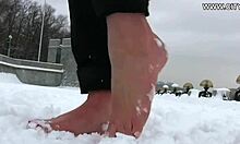Hot Bitch Strolls Barefoot On Snow – Provocative!