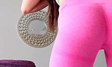 Млада хубавица в тесни спандекс легинги се търка до оргазъм в гащи
