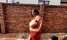 SA Colored BBW Chainsmokes Naked Garden Cigarette Nipple Show!