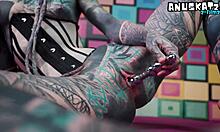 cute tattooed goth girl rides fuckmachine anal deep until squirting orgasm hits hard petite body