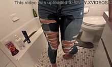 Kinky babe indulges in solo golden shower fetish with toys