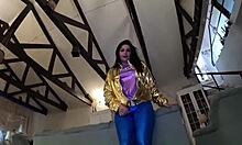 Minha madrasta vem cansada do trabalho soca o braço no cu dela com sex toy