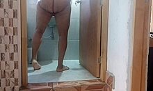 holy shit this horny colombian milf sneaks to my bathroom door rubbing her fat pussy wild