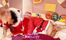 naughty christmas with japanese couple practicing for santa baby-making