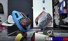 teen shoplifter bribes cop by letting him rip clothes and fuck pussy