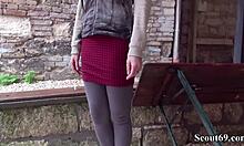 German scout fucks 18+ teen Tata Lilashi's hairy pussy hard in public casting