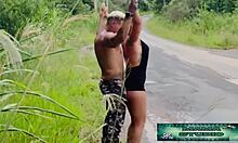 Mama caught mid-wild fuck in woods by young stud's monster cock stretching her brazilian milf pussy wide