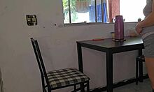 stepdaughter sits perfect ass on lap for hot coffee grind tease