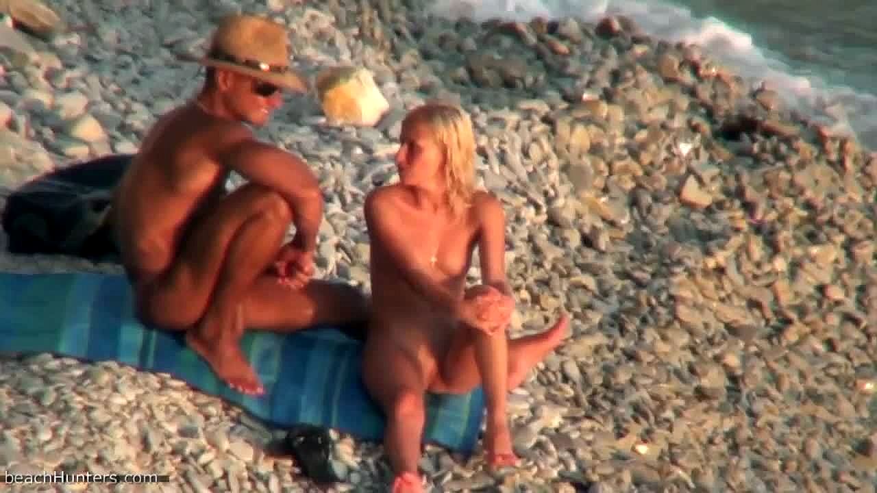 nudist beach fun with a super tanned blonde caught on cam! 🏖️