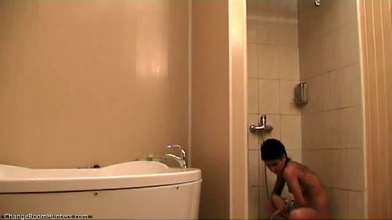 Good-looking swimmer flaunts big naturals in shower on hidden cam! Wow! 😍