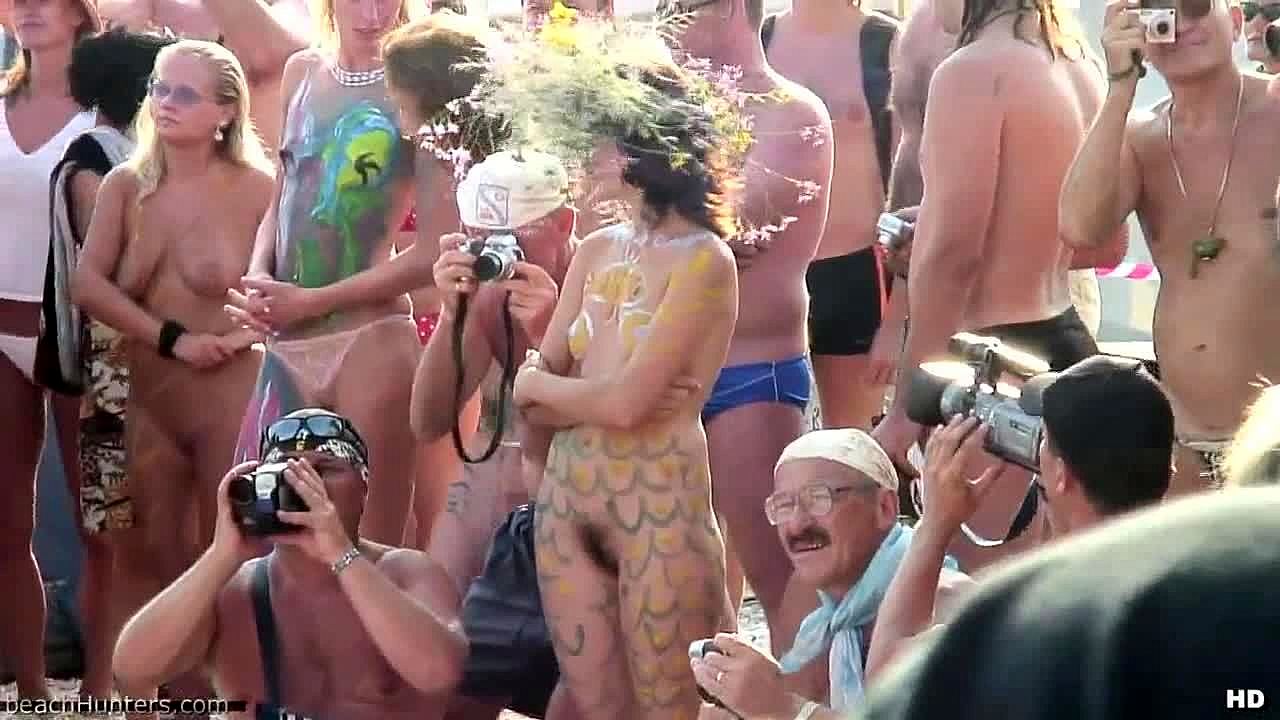 Yo, Bak Bu Genç 18+ Esmer Çıplak Dans Ediyor Boyalı Olarak Nudist Plajda