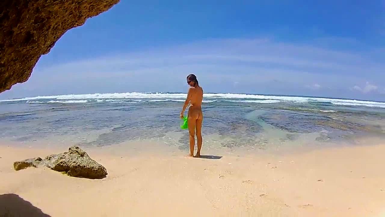شاهد حركة كوغيرل خام على شاطئ عاري عام. كام مخفي يلتقط كل حركة قاسية.