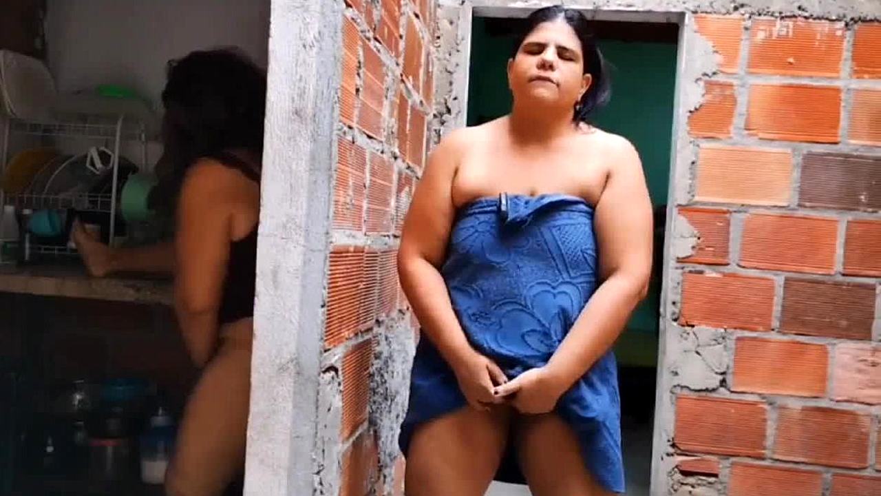Hombre, detrás de escena con madrastra latina caliente preparando su culo grande para anal
