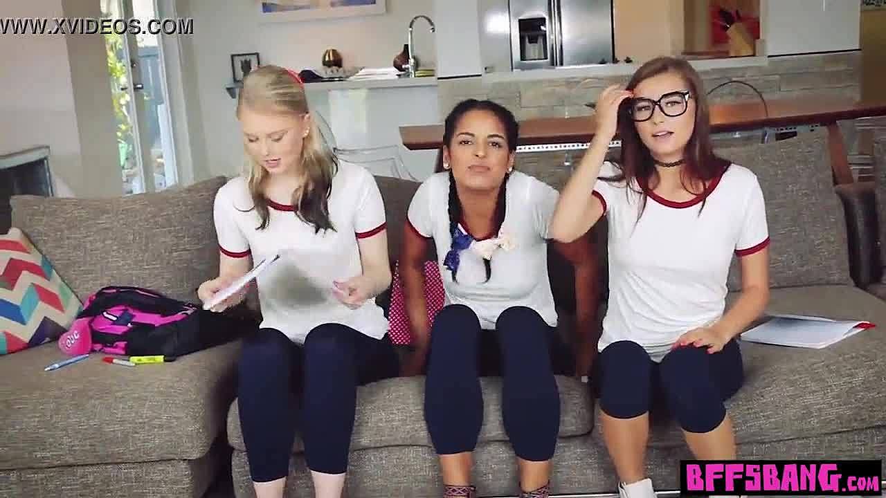 Young horny teen stepsister and her best friend in a threesome with stepbrother from POV 😏💦