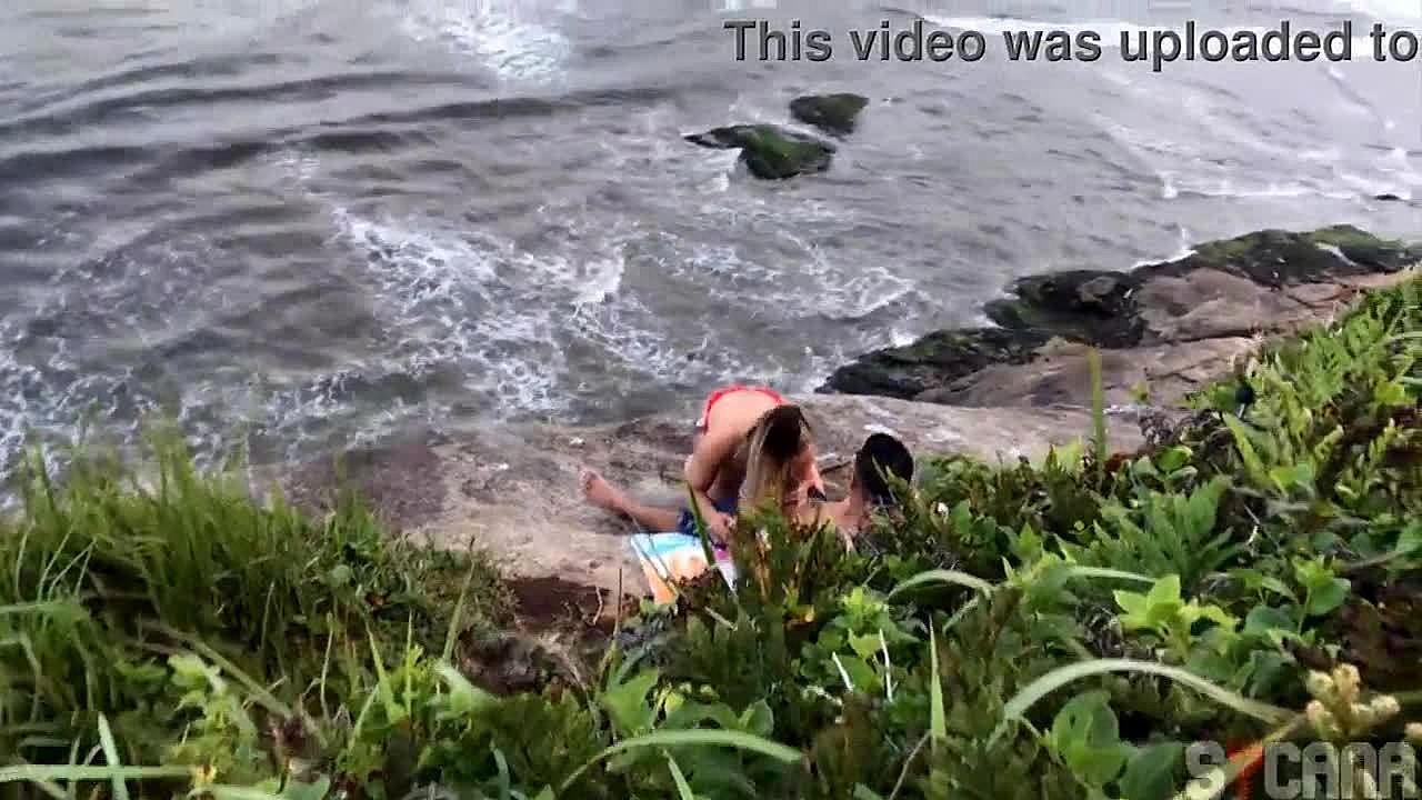 Look at this leggy redheaded beauty dry humping on a nudist beach! Incredible!