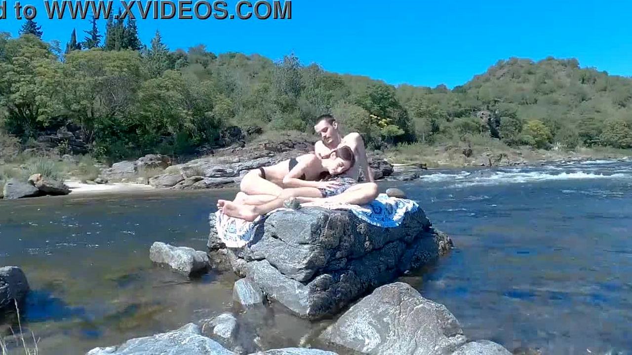 Freches junges Paar schleicht Quickie-Fick am felsigen Strand