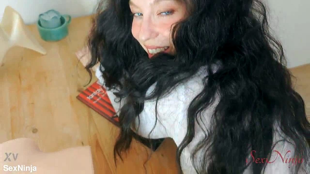 Seksi babe i lilla leggings cremer hårdt på Tantaly futanari dukke under vild solo