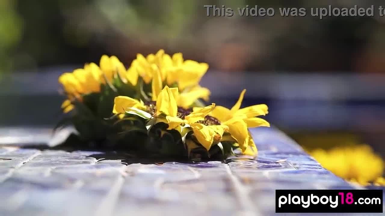 Sexy Blue-Eyed Blonde Teen Strips Naked by Poolside